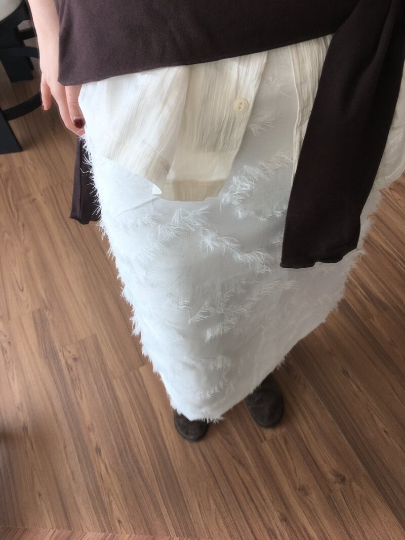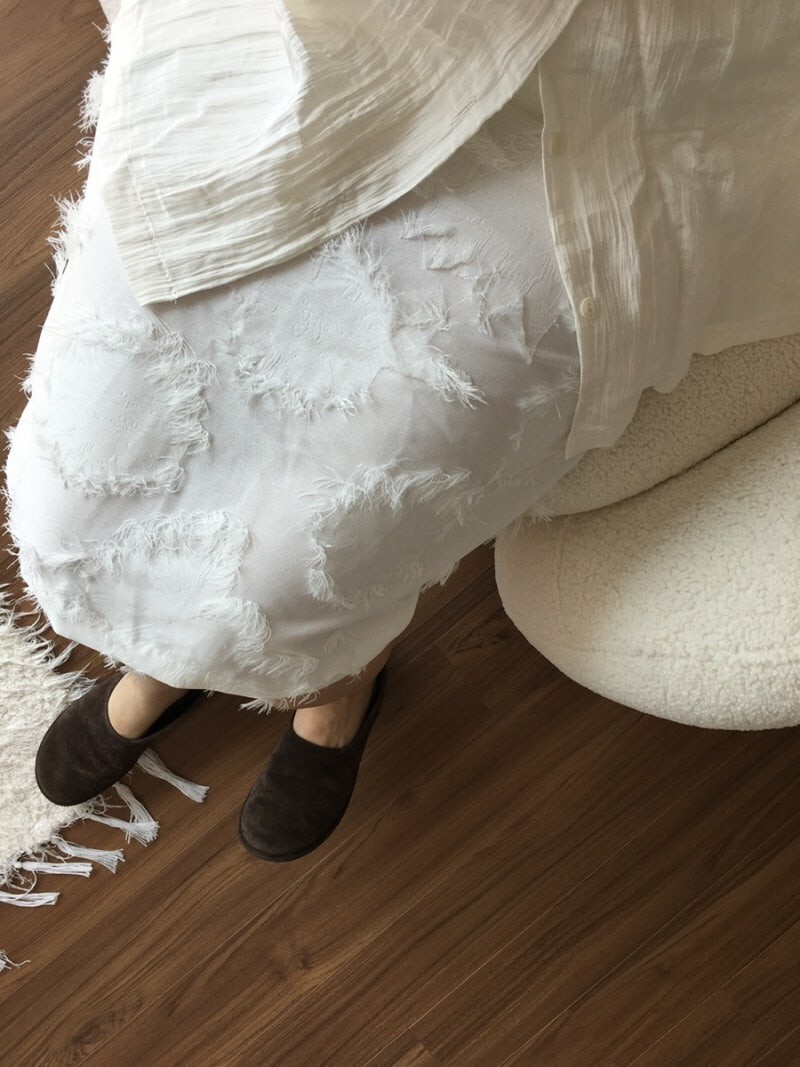 포슬포슬한 패턴 디테일이 포인트인 스커트입니다. 허리 밴딩으로 체형 구애 없이 착용할 수 있어요. 안감 있어서 아이보리 컬러도 비침 없이 착용 가능하고, 두께감도 적당해서 한겨울 빼고는 손이 잘 갈 것 같아요. 클래식한 코디도 좋지만, 가벼운 티셔츠나 스웻셔츠와도 잘 어울리는 fore. 격식있는 자리에서도, 캐주얼한 자리에서도 함께해주세요.