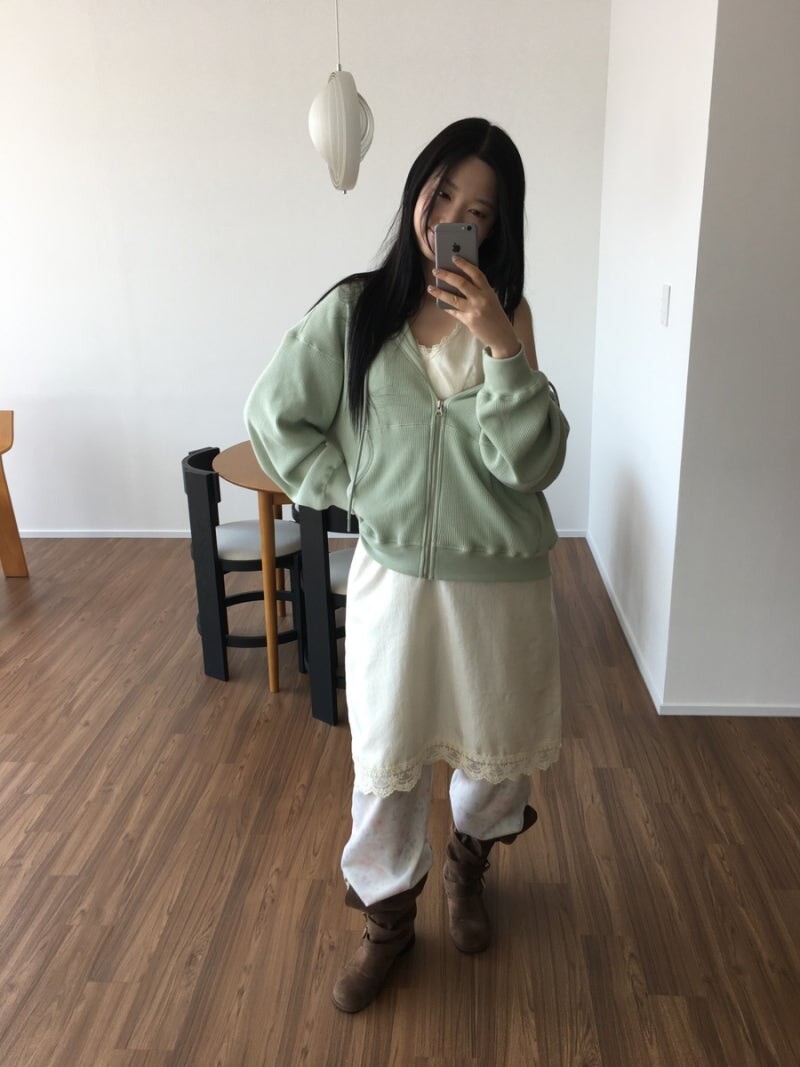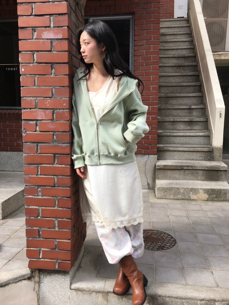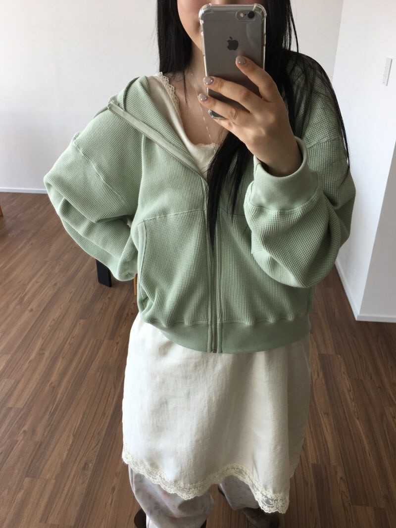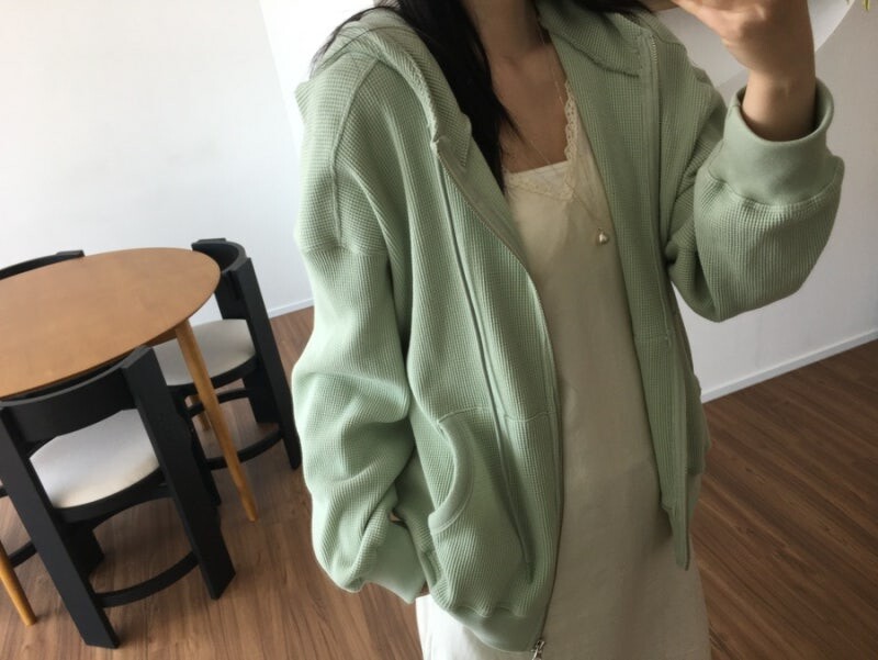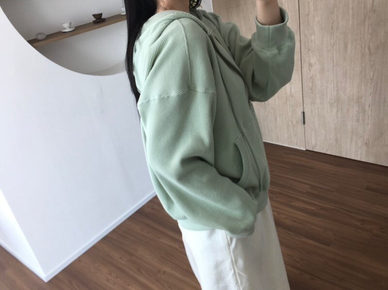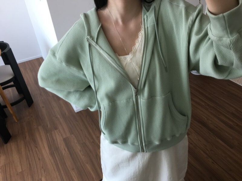 봄을 쏙 빼닮은.. 산뜻하고 깨끗한 컬러감의 와플 후드 집업이에요. 겨울부터 편하게 입을 수 있는 후드집업 하나 소장하고 싶어서 찾고 찾았었는데.. 드디어 발견했어요. 집업 종류는 핏되는 것보다 살짝 루즈해야 더 예쁜거 아시죠.. 루즈한 팬츠 위에 툭 걸쳐주셔요,